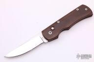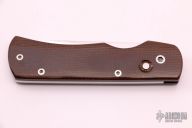 This is a side-opening coil spring automatic with a high polish blade and brown canvas micarta handle. Nice action and blade seating. Excellent condition.