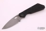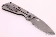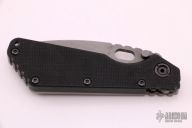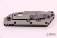 This SMF from Strider Knives features a bead blasted blade and black G10 and bead blasted titanium handle and anodized tip up titanium clip. Notches on thumbrest, rear of handle, and lockup. Includes Hinderer "Lock Bar Stabilizer" for maximum reverse lock retention. Has "NSN: 1095-01-531-5015" on blade. Nice action, detent and blade seating. Has scuffs and scratches, fair condition.