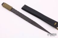 In 1988, he began making specialized knives for use by the military. This turned out to be fortunate turn of events, both for Mick and for the knife using world at large. Mick’s approach was to not get burdened by the weight of past designs. He started with a tabula rasa, a clean slate, informed only by his own experiences and knowledge of what a soldier needed in a knife. The knives he made didn’t look like the hunter-inspired knives seen in most PXs; instead they were almost brutish in their functionality: beefy, solid, and with unbreakable ¼” stock full tangs. These knives were the first indication of his innovative approach: in addition to their utilitarian design, the knives carried a subdued finish and subdued sheaths. No one carrying a Strider knife was going to be spotted because of sunlight glinting off of polished steel or a glossy leather sheath. Soldiers, policemen, and other men going into harm’s way couldn’t buy them fast enough. Mick sampled some good ideas, but made them great. For instance, he was not the first to wrap a knife handle with paracord, but he was the first to do it in a way that was tough enough for sustained infantry use. His knife line grew over the following years to include different varieties of fixed blades, all distinctive and many with specialized uses. But constant in all of them was a disregard for convention, and a desire to try new ideas. An example of this was the Ajax – it featured a very wide blade surface clearly designed to inflict damage. It drew on the weapons carried by Roman legionnaires, yet was modern and usable in the 21stCentury battlefield. Mick also worked on his technical skills, always striving to become better at the physical craft. At the 2002 Blade Show, a group of the best tactical knifemakers in the country decided to compete with each other to produce the most innovative and interesting fixed “battle blade” at the show. Mick’s entry, an incredible integral knife made out of ½” titanium stock with a zippered composite blade, gorgeous handles, and integral guard was the unanimous winner, and effectively retired the competition.