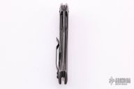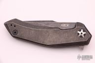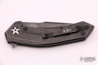 This 0095BW by Zero Tolerance knives features a blackwashed blade with notched flipper. The handle has a black washed titanium frame with tip up stainless clip. Nice detent, lockup and blade seating. Excellent condition. Comes with original box and papers. #1221