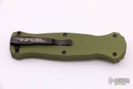 The Benchmade Infidel is outfitted with a durable lightweight aluminum handle and a double-edged dagger blade. A front loaded firing button provides smooth double action deployment and retraction with an easy to use design. Item includes a deep-carry pocket clip for tip-down carry. Features: