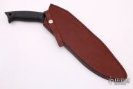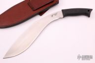 This Kukri II by Blackjack Knives features a satin finished kukri style blade with .150" blade stock and 2.300" blade stock, hidden tang construction. The handle is rubber with lanyard hole. Comes with a brown leather sheath. Has some light scratches, otherwise excellent condition.