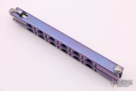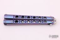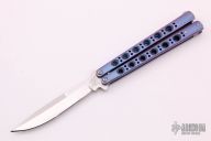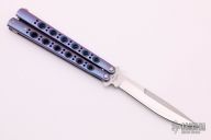 This Model 42A Balisong features a satin finished drop point blade and anodized titanium handles with an orange peel finish. Has T-latch. Includes original sheath. Has a few light scratches, otherwise excellent condition.