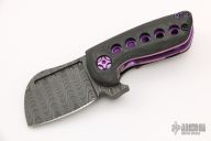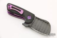 This custom Kutzu Flipper from Quest Custom Knives features a black stainless damascus blade with fullers. The handle is made up of anodized titanium liners with marbled carbon fiber scales. The pocket clip is also anodized and positioned for tip up carry. Blade is centered when closed, flips well, and locks up with no movement. Comes in a padded/zippered case with certificate of authenticity dated 11/21/18. Excellent condition.