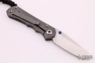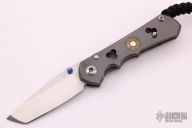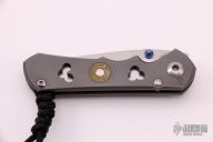 This Small Inkosi from Chris Reeve Knives features a tumble finished tanto style blade with dual anodized thumb studs and notched thumbrest. The handle is comprised of a bead blasted titanium frame over a single barrel spacer with a matching bead blasted titanium tip up clip. The handle has been customized with a 45 Auto inlay and MOA holes. Includes original box and COA dated August 26, 2020. Excellent condition.