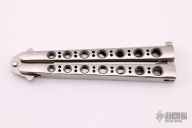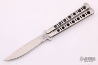 The model 45C by Benchmade features a spear point blade with false top edge. Stainless steel skeletonized handles with T latch. Excellent condition. Comes with original sheath, box and papers. #0223