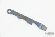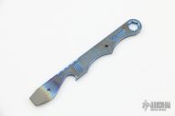 Titanium prybar from Korth Cutlery has a bottle opener, key ring hole, hex key, millings, flat head screw driver and prybar. Tumbled and anodized. New from maker. 3.875" oal.