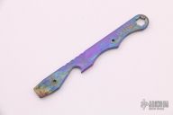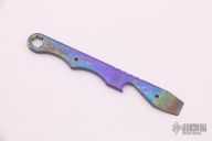 Titanium prybar from Korth Cutlery has a bottle opener, key ring hole, hex key, millings, flat head screw driver and prybar. Thunderbolt lightning anodization. New from maker. 3.875" oal.
