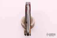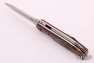 This Legacy by Greg Lightfoot features a satin finished tanto blade with asymmetrical sedge, notched thumbrest and a flipper. The handle has hybrid wood scales, satin finished titanium liners, anodized titanium backspacer and tip up clip. Rides on bearings, nice lockup, detent, and blade seating. Comes with original box and COA dated Nov 2021. NEW FROM MAKER.