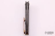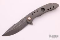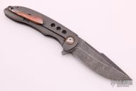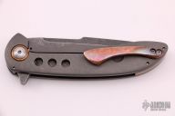 This Jolt flipper from Jonas Iglesias features an acid tumble finished blade with flipper. The handle has a tumbled titanium frame, copper pivot collars, floating backspacer and tip up clip. Rides on bearings, nice detent, lockup and blade seating. Excellent condition.