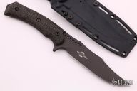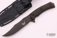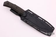 The Recondo has been designed to be a smaller fighter that can easily be carried on a daily basis. The blade is modeled after the legendary MACVSOG blade dating back to the Vietnam conflict. The Recondo has sure but comfortable jimping. The Recondo blade is made of American CPM S35VN and is PVD coated. Features full tang construction with exposed and radiused tang edges. This is done to reduce rolling in the hand and add impact strength to the handle. The scales are strongly contoured to give a sure and comfortable grip. The pommel end of the Recondo feature a beveled skull crusher. The sheath is molded of .080 thick Boltaron and features a custom molded, removable belt loop. The sheath has a wear tensioner feature. Sheath features ample tiedown points/slots for alternative mounting solutions. Sheath features thumb push off jimping and drain feature. The Recondo was designed and built in the USA, built from 100% USA sourced materials.