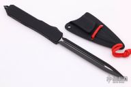 This Venomtech by Microtech knives features a double-edged black blade with standard edges. The handle is black aluminum with all black hardware and glass breaker. Comes with kydex neck sheath, original box and papers. Dated 2014 and serial number 0553. Excellent condition.
