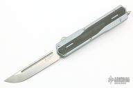 This Night Stalker OTF Auto by No Limit Knives features a satin finished blade. The handle has a blue aluminum frame with carbon fiber inlays, tip down titanium clip. Comes with a zippered case. New from maker.
