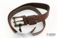Custom Titanium Belt Buckle with 46" brown leather belt by Tim Miller. Accepts a 1.5" belt. Comes with COA. New from maker at the 2021 NYCKS.