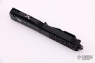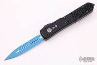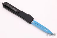 This Ultratech OTF automatic by Microtech features a D/E blue blade. Black aluminum contoured frame with black tip down stainless steel clip. Dated 09/2021 and s/n 5495. Excellent condition.  Comes with original box and papers.