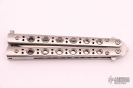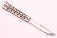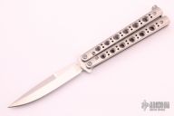 This Model 62 Balisong by Benchmade features a stonewashed spear point D2 blade with a false top edge. The handle has stainless steel handles and latch. Comes with original box, sheath and papers. Has a couple light scratches on the handle, otherwise excellent condition.