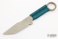 This Ringed Tanto by Jeremy Horton features a bronze DLC coated and tumble finished chisel ground blade with mirror polished edge, .203" blade stock and 1.165" blade depth, full tang construction with cord wrapped grip. Comes with a zippered case. New from maker at the 2021 KYCKS.