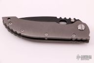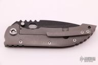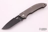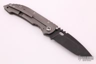This Regulus from Dalibor Bergam features a black tumble finished blade with notched thumbrest and thumbhole. The handle is comprised of tumble finished titanium with a matching pocket clip positioned for tip up carry. The blade is centered when closed, opens/closes smoothly, and locks up with absolutely no play. Excellent condition.