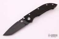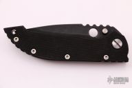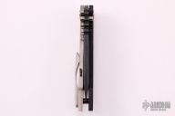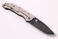 This Regulus from Dalibor Bergam features a black tumble finished blade with notched thumbrest and thumbhole. The handle has black G-10 and orange peel finished titanium frame with a matching pocket clip positioned for tip up carry. The blade is centered when closed, opens/closes smoothly, and locks up with absolutely no play. Excellent condition.