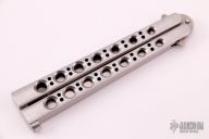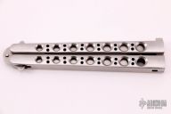 The model 44 by Benchmade is rare and hard to find. This knife features a tanto style blade. Stainless steel skeletonized handles with T latch. Has some light scratches, otherwise good condition.