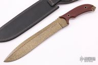 This Fighter by RCF Combat features a gold powder coated blade, .204" blade stock and 1.710" blade depth, full tang construction. The handle has red canvas micarta scales with tube pins. Comes with a black leather sheath and COA dated 7/29/2019. New from maker.