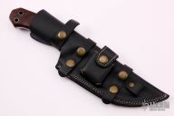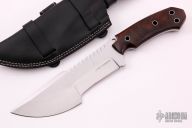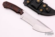 This Fighter by RCF Combat features a satin finished blade, .195" blade stock and 2.275" blade depth, full tang construction. The handle has walnut wood scales with tube pins. Comes with a black leather sheath and COA dated 7/20/2019. New from maker.