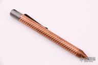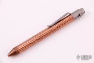 This pen by Nottingham Tactical features a copper construction with a carved pattern. The pocket clip and clicker are titanium. This pen features a double Lock and takes a Parker cartridge. New from maker.