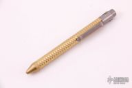 This pen by Nottingham Tactical features a Brass construction with a carved pattern. The pocket clip and clicker are titanium. This pen features a double Lock and takes a Parker cartridge. New from maker.