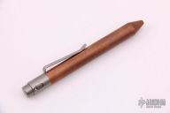 This pen by Nottingham Tactical features a copper construction. The pocket clip and clicker are titanium. This pen features a double Lock and takes a mini G2 cartridge. New from maker.