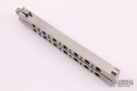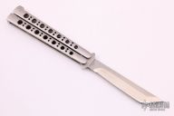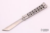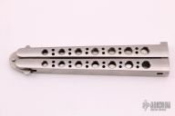 The model 44 by Benchmade is rare and hard to find. This knife features a tanto style blade. Stainless steel skeletonized handles with T latch. Light scratches are visible on the blade and handle otherwise the knife is in good condition.  Includes a nylon sheath.