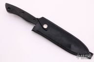 This Mamba 7-L by Blackjack Knives features a bead blasted recurve blade with false top edge, .180" blade stock and 1.321" blade depth, full tang construction. The handle has rubber scales. Comes with black leather sheath. Has "RLM" on the back of the blade. Excellent condition.