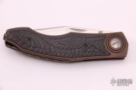 The Makosha offers a refined Anton Malyshev design from Custom Knife Factory. This model is outfitted with a satin finished clip point blade and a bronze titanium handle with a carbon fiber inlay. Add an elegant accent to your folding collection with the Custom Knife Factory Makosha.