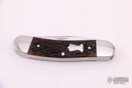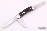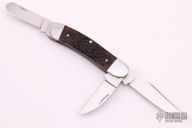 This 3 Blade Sowbelly by Rick Nowland features a clip point, wharncliffe and spey blade with satin finish and nail nicks. The handle is comprised of steel double bolsters, jigged bone covers and nickel silver pins over steel liners and backsprings. Has some light scratches and oxidation spots, otherwise good condition. Includes padded and zippered nylon case.