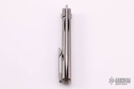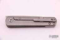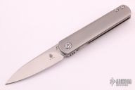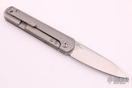 This Feist from Kizer was designed by Justin Lundquist. It features a tumble finished blade with front flipper. The handle is comprised of bead blasted titanium over titanium backspacer and matching tip up clip. Has a couple marks on the blade and scuffs on the frame, otherwise good condition.