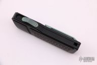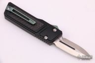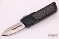 This Akuma OTF Auto by No Limit Knives features a satin finished double-edged blade with carbon fiber inlays. The handle has a black aluminum frame with carbon fiber inlays and a steel pocket clip. Comes with a zippered case. New from maker.