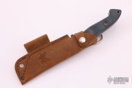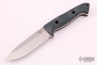 This Bushcrafter from Benchmade features a drop point tumble finished blade with .165" blade stock and 1.176" blade depth, full tang construction. The handle is comprised of green G10 scales over red liners and full tang construction with hollow pins and a lanyard tube with lanyard. Includes leather sheath with a belt loop, original box and papers. Excellent Condition.