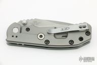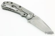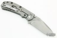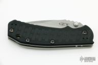 This 0550 Zero Tolerance/Hinderer designed folder features a black G-10 and bead blast titanium handle. The blade is tumble finish with dual thumbstuds. "0550 Hinderer design Made in the USA" stamped on back of blade with serial number 7850. Tip up carry, 4-way reversible. Strong lock up, nice detent and centered blade seating. Includes original box and papers. Has a couple light scratches on the blade and clip. Otherwise, excellent condition.