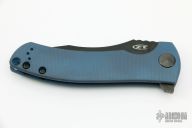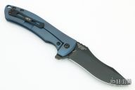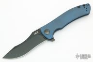 This 0920 Les George Design Flipper by Zero Tolerance features a dlc clip point recurve blade with notched thumbrest and flipper. The handle has a milled and anodized titanium frame with black pivot and anodized tip up reversible clip, black barrel spacers. Comes with original box and papers. S/N 0148. Has a few light scratches, otherwise excellent condition.