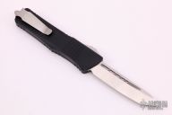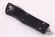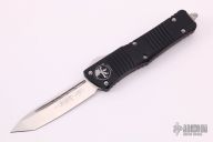 This Combat Troodon by Microtech features a satin finished tanto blade. The handle has a black aluminum frame with blasted hardware and tip down clip. Comes with original box and papers. Dated 05/2021 and s/n 34777. Excellent condition. Has a custom titanium clip by Maverick Customs, comes with a 3D printed tool to remove the glass breaker.
