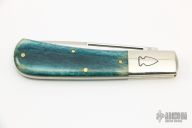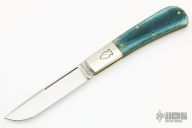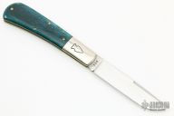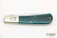 This Madison Barlow from Northwoods Knives features a clip point blade with swedge, long pull, and satin finish bevels. The handle is comprised of nickel silver arrowhead bolsters with camel bone covers and over steel liners and backspring. Some handling marks on cap and escutcheon but otherwise great condition. Includes cloth slip pouch.