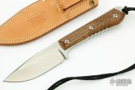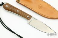 "In the Chris Reeve Knives tradition of simple, elegant and functional, the Nyala is a modern version of a classic skinner. Featuring the utility of a drop point and enough belly for skinning, this all purpose knife will prove useful in a multitude of applications. The integral handle and blade of CPM S35VN is sturdy and practical - spiral and lineal grooves in the Tamboti wood handle provide positive grip - good knife control is provided by serrations on the spine. The high quality sheath is made of leather treated to be water resistant." Comes with original sheath, box and COA dated September 7, 2011. Excellent condition. This was a limited edition of 25 pieces for Orvis. Comes with a copy of the original advertisement.
