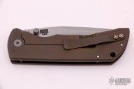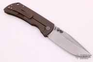 This MAC2 features a stonewashed drop point blade with dual thumbstuds and a notched thumbrest. The handle features an anodized titanium frame with a matching tip up pocket clip. Includes box and papers. New from Maker!