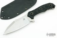 This Colubris by American Kami features a tumbled blade with notched thumbrest, .182" b;ade stock and 1.505" blade depth, full tang construction. Black G10 milled scales. Comes with Kydex sheath. Excellent condition.