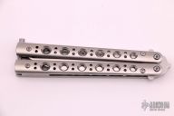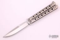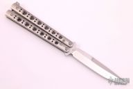 This Model 62 Balisong by Benchmade features a stonewashed spear point D2 blade with a false top edge. The handle has stainless steel handles and latch. Comes with original box and papers. Has a couple light scratches on the handle, otherwise excellent condition.