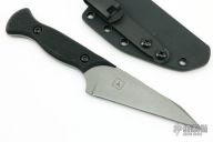 The Kramer Custom Knives Do Know Harm was created based on the requirements of a currently practicing 18D trained combat and trauma medical doctor. Based off of an 11B scalpel blade and designed primarily as a medical tool, it also excels in defensive as well as EDC applications. The Do Know Harm can be called upon whenever you need precision work to be done. Its thin wharncliffe blade with acute point and two sets of jimping allow for unparalleled control. With a full grip the knife pierces and cuts aggressively beyond its relatively small footprint. A textured and contoured G10 handle affords most grip styles for the task at hand. Forward jimping allows control while climbing far forward on the knife for delicate work. The darkened AEB-L steel is able to hold a razor edge with a thin spine. Combined with its tactile G10 slabs, the Do Know Harm has a remarkably thin footprint.