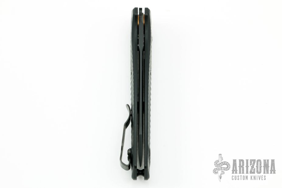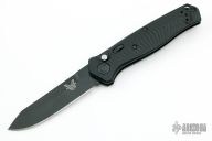 This Mediator by Benchmade Knives features a black clip point blade with a false top edge and notched thumbrest. The handle has black G-10  scales, black stainless steel liners and tip up clip, left or right reversible. Has safety. Comes with box, pouch and papers. Excellent condition.