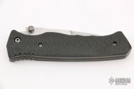 This Kick-Start Prototype linerlock by Butch Vallotton has a hand rub satin finish blade with swedge and dual thumbstuds. The handle has carbon fiber scales and titanium liners. Good function, good lockup and blade seating. Has a couple light scratches, otherwise excellent condition.