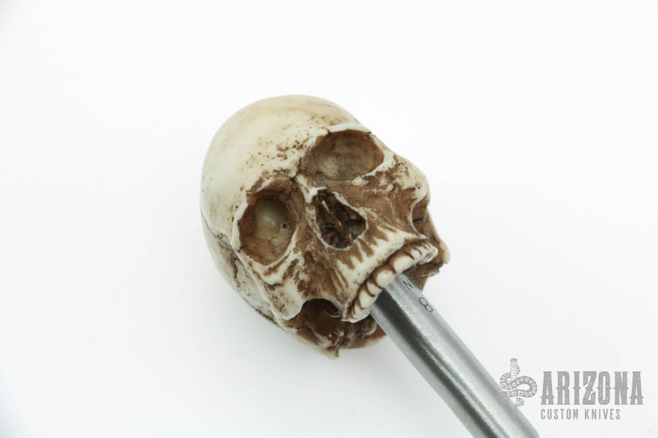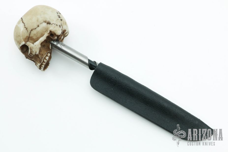 3/8" x 5" ship auger spike with resin skull handle. Comes with a kydex sheath. Excellent condition.