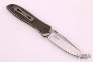 This knife by Zero Tolerance is an Emerson design. It features a two-tone blade with thumbdisc. The handle has green canvas micarta scales, stonewashed titanium frame and tip up titanium clip, left or right reversible. Comes with original box, and papers. Comes with original scales Excellent condition. s/n 4796
