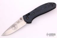 This Limited Edition Griptilian by benchmade features a stonewashed blade with a plain edge. The handle has textured black G-10 with blue barrel spacers. The pocket clip can be reversed for right or left tip up carry. The AXIS lock system makes the knife easy to open and easy to close. This is a limited run of just 1000 knives for "National Matches NRA OHNG CMP". Excellent condition.